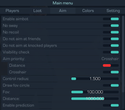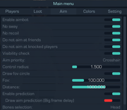 - Aim priority / Set priority for aimbot operation (distance / sight)