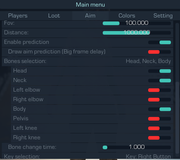 - Bones selection / Selecting a body part for aimbot operation, you can select 1 body part or several