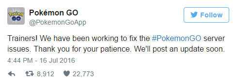 Pokémon Go tweeted this in the morning when the outage took place.